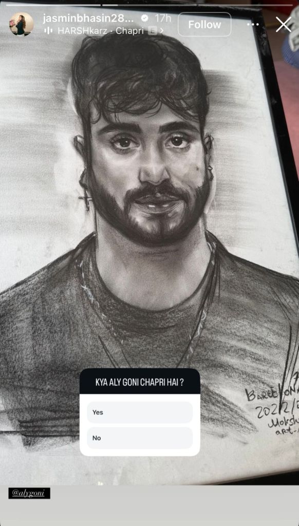 On Tuesday, Aly shared a poll question about his girlfriend Jasmin on his Instagram Stories. He posted a picture of Jasmin in jeans and white crop top along with a question, “Kya Jasmin chapri hai (Is Jasmin tacky)”. Soon after Jasmin also shared a sketch of Aly and asked “Kya Aly chapri hai (Is Aly tacky)”.