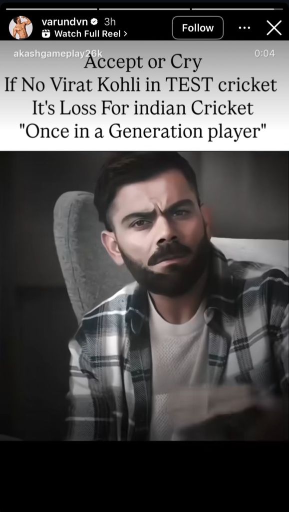 Varun Dhawan shared a video labelling his retirement a huge loss for Indian cricket with Kohli’s Test retirement.
