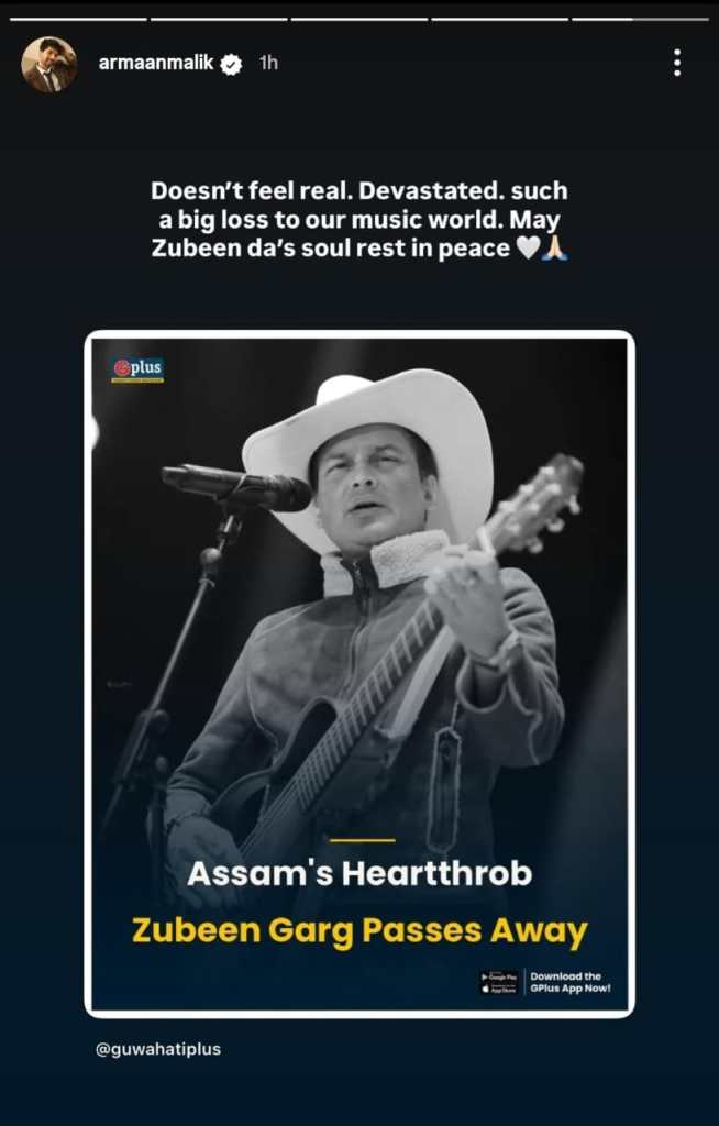 Armaan Mallik wrote, “Doesn’t feel real. Devastated. Such a big loss to our music world. May Zubeen da’s soul rest in peace.”