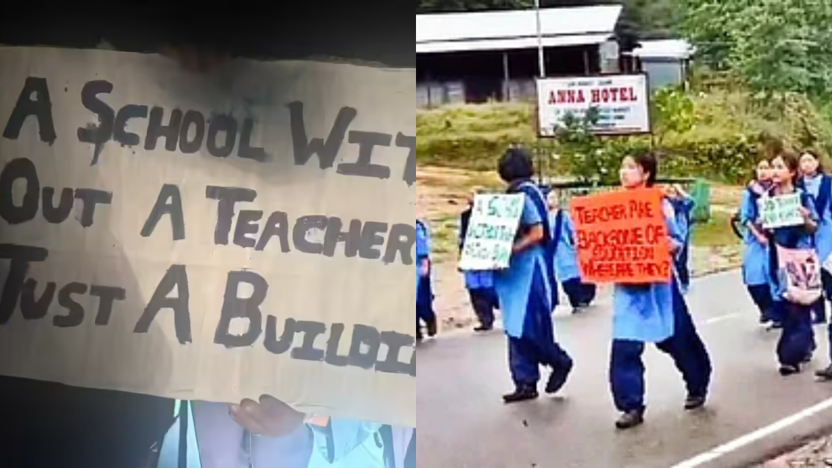 The Class 12 and Class 11 students of KGBV led the march and protested for an immediate posting of teachers for the Geography and Political Science students. The students carried posters that read “a school without a teacher (is) just a building”.