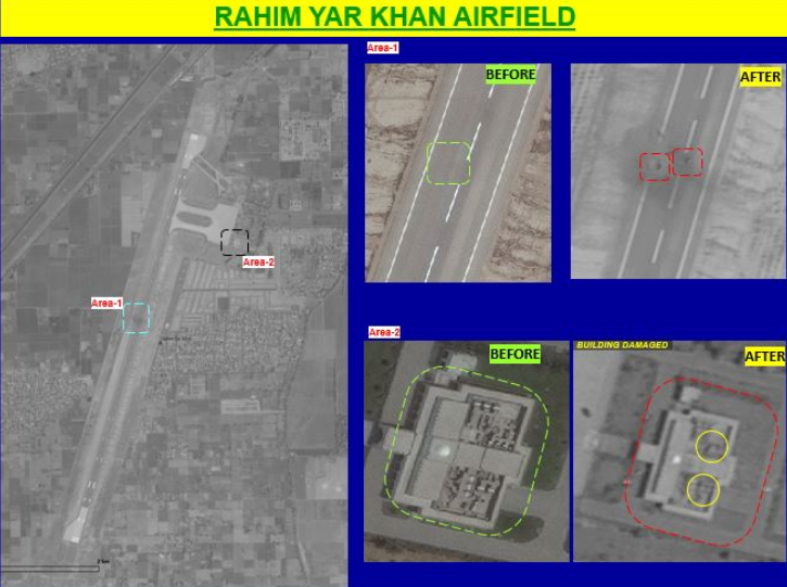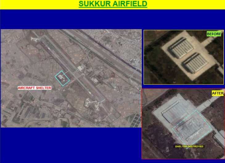 He further stated that specific targets in airfields of Sargodha, Rahim Yar Khan, Nur Khan in Chaklala, Sukkur, Bholari, and Jacobabad sustained significant damage during those attacks.