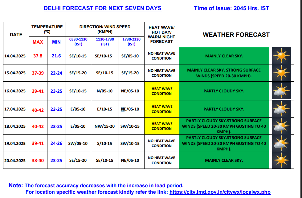 As Delhi-NCR heads into the second half of April, we can expect a noticeable increase in temperatures, and more importantly the possibility of heatwave conditions, between April 16 and 18. Expect hot and dry conditions with temperatures up to 40°C before relief comes on April 19 with the help of a Western Disturbance. Here is an analysis of the weather, forecast for the week, and tips to stay safe during the heatwave.