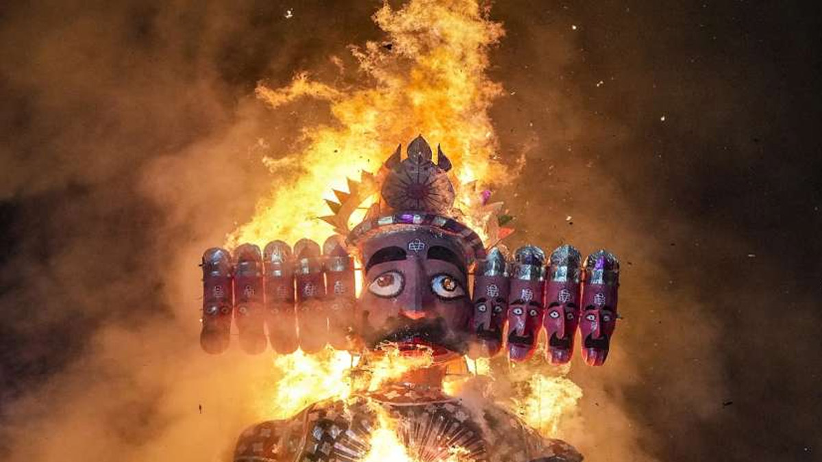 The burning of Ravana’s effigy, known as Ravan Dahan, takes place in the evening during Pradosh Kaal, which begins after sunset. Across the country, effigies of Ravana, Kumbhakarna, and Meghnad are set ablaze, symbolising Lord Rama’s victory over the demon king of Lanka and the triumph of good over evil.