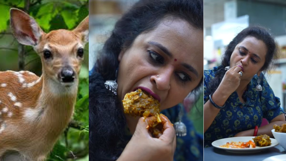 ‘This is what happens if you eat dried deer meat and suck out the marrow. If you want to eat it too, come along.’- This is what food vlogger Usha Mathew wrote while posting a video of herself happily eating deer meat. The post quickly garnered numerous likes and shares, with some raising concerns about her consuming wild animals. In response to those questioning the legality, she clarified that she filmed the video in a foreign country.