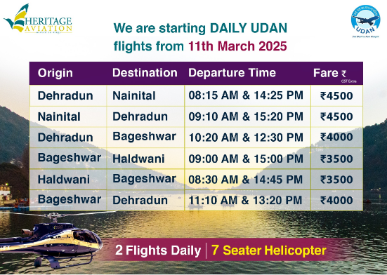 Uttarakhand: Heritage Aviation is set to boost tourism and make traveling easier and smooth in Uttarakhand. Under the Central Government’s UDAN Scheme, the company has launched its new helicopter service from today, March 11, 2025, Heritage Aviation told News24. The service will connect four major cities in the state: Dehradun, Nainital, Bageshwar, and Haldwani.