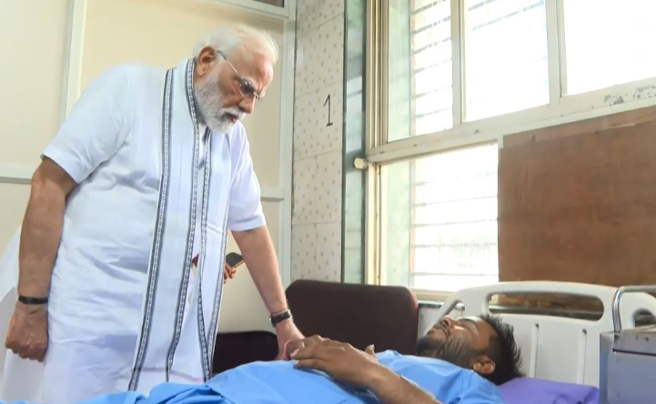 Prime Minister Narendra Modi on Friday visited the Ahmedabad Civil Hospital and met with Vishwashkumar Ramesh, the lone person to miraculously survive the Air India plane crash a day ago in which all the other 241 passengers died.