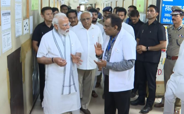 Before arriving at the hospital, PM Modi inspected the plane crash site and took stock of the ground situation. He also held a review meeting with the officials at the airport in Ahmedabad.