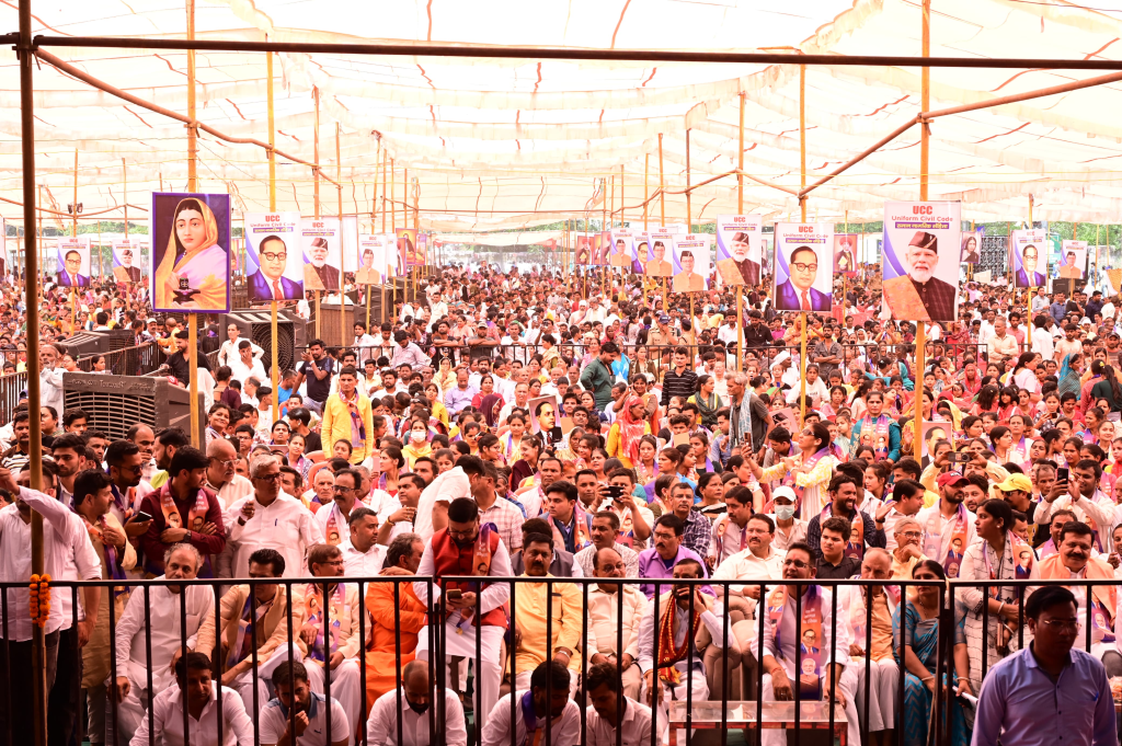 Chief Minister Pushkar Singh Dhami was honoured by the Dr. B.R. Ambedkar Mahamanch at a program held in Haridwar for implementing the Uniform Civil Code (UCC) in Uttarakhand. This event was organized at BHEL Ground in Haridwar on the occasion of the 135th birth anniversary of Constitution maker Dr. Bhimrao Ambedkar, and saw the enthusiastic participation of a large number of local people despite the scorching heat.