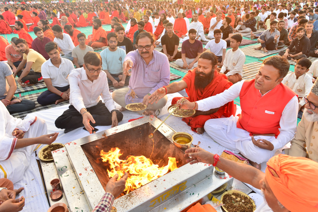 Swami Ramdev extended his warm wishes to all the citizens of India, offering them his blessings for a prosperous new harvest. He emphasized that Holi is not just a festival of colours and joy, but also a symbol of social harmony, love, brotherhood, and the victory of good over evil. He urged the gathering to pledge on this Holi that we would stay true to our path of righteousness and not let negative emotions like self-guilt, forgetfulness, or self-obsession affect us. Swami Ramdev reiterated that every festival in the Sanatan culture should be celebrated with yoga and yajna, which are the vital and spiritual elements of the culture. He also urged the people to celebrate Holi with unity, without letting intoxicants like bhang or alcohol disrupt the harmony of the festival, stressing that it could be harmful to society.