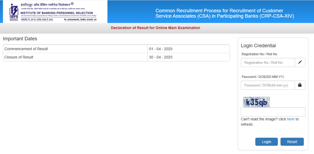 The Institute of Banking Personnel Selection (IBPS) has declared the IBPS Clerk Mains Result 2025 on April 1, 2025. IBPS Clerk Mains Result 2025 has been released on the official website. Candidates who appeared for Mains exam can download their results from the official website @ibps.in. The result have been announced for Recruitment of Customer Service Associates (CSA) in Participating Banks (CRP-CSA-XIV). To check the IBPS Clerk Result, candidates will need to log in with their credentials. Candidates are required to enter Username/Registration Number and Password/Date of Birth to access their result.