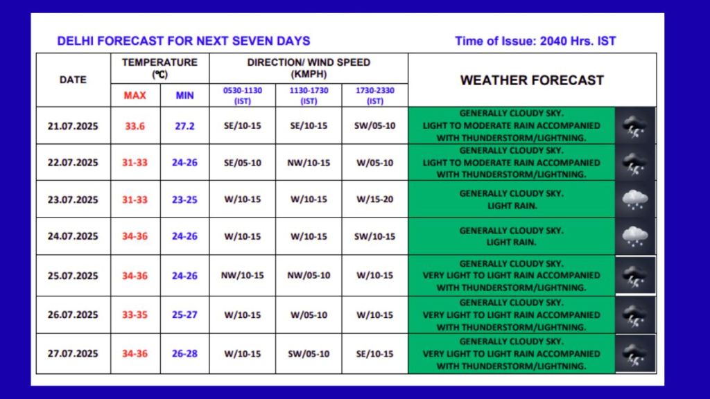In East and Central India, Madhya Pradesh, Chhattisgarh, and Odisha will see continued rainfall activity until July 27.