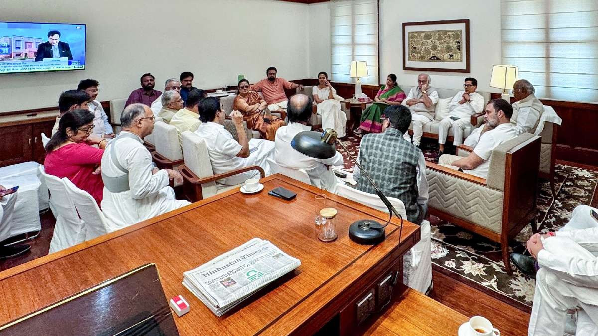 So far, Congress Parliamentary Party Chairperson Sonia Gandhi, LOP Rajya Sabha Mallikarjun Kharge, NCP-SCP chief Sharad Pawar, Shiv Sena (UBT) chief Uddhav Thackeray, National Conference President Farooq Abdullah, Samajwadi Party chief Akhilesh Yadav, DMK MP Tiruchi Siva, RJD leader Tejashwi Yadav and TMC leader Abhishek Banerjee attended the meeting.