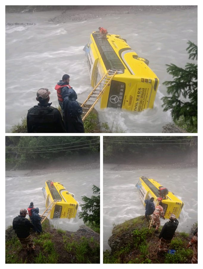 An ITBP bus, used for transporting security personnel, plunged into the Sindh River in the Kullan area of Ganderbal district, Jammu and Kashmir, on Wednesday during heavy rainfall. Initial reports indicate the bus was carrying several weapons, which are now reported missing. A joint search and rescue operation, led by SDRF Ganderbal and SDRF Sub Component Gund, is ongoing in the river. Three weapons have been recovered on Wednesday.