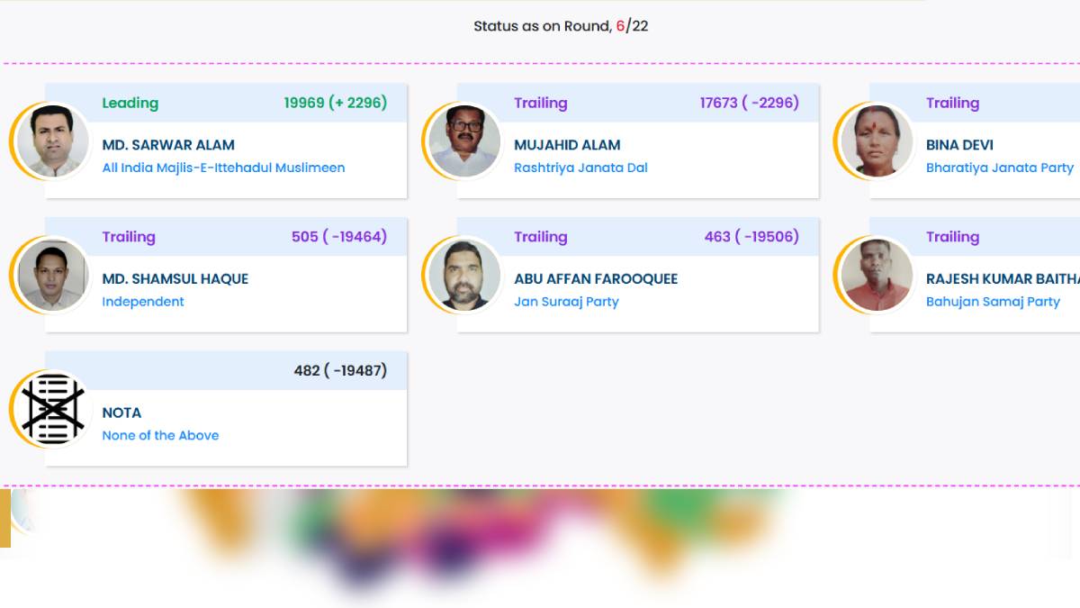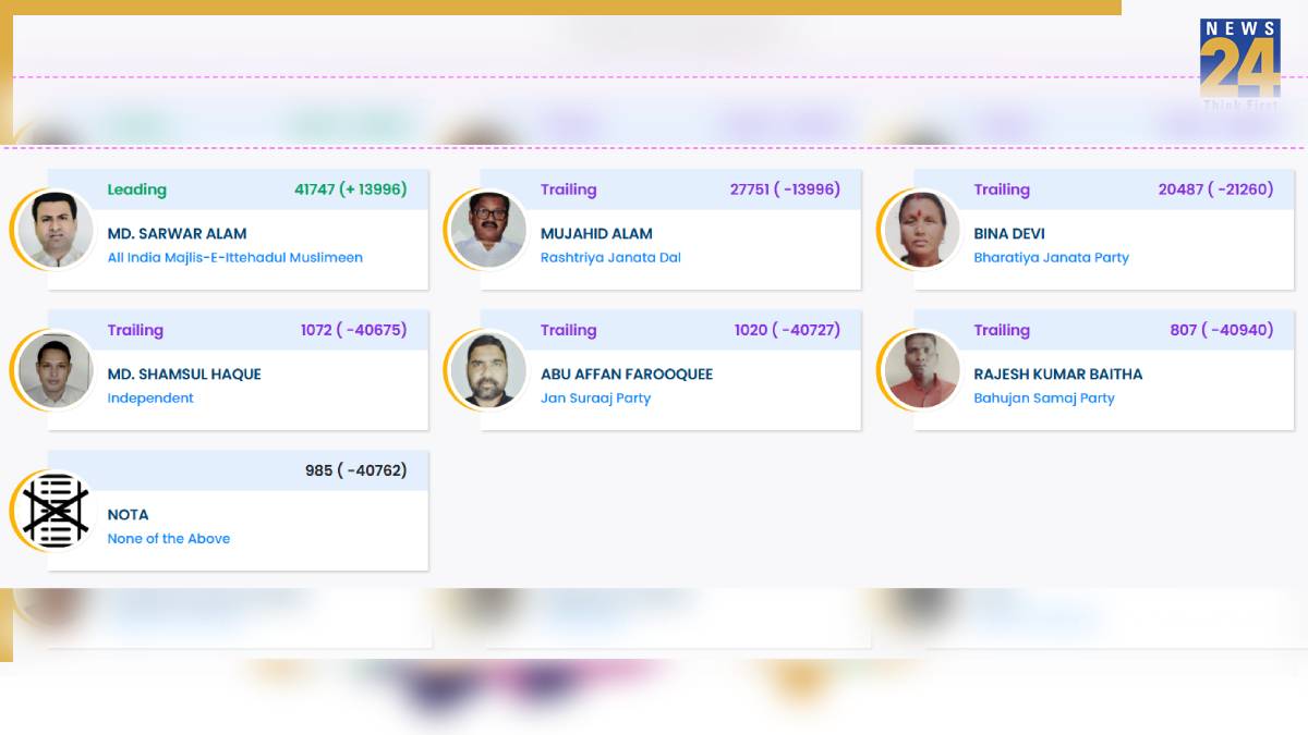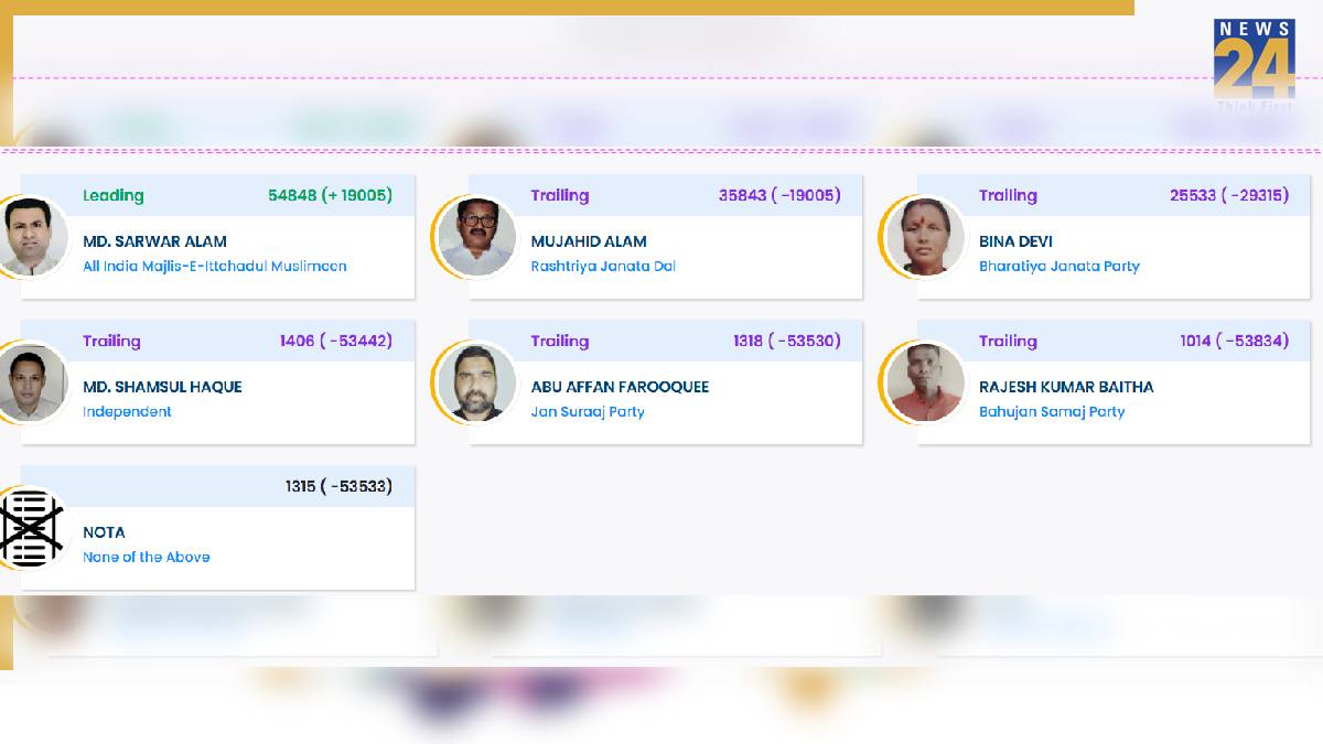 Located in Bihar’s Kishanganj district, it falls under the Kishanganj Lok Sabha seat and borders the Indo-Bangladesh corridor through West Bengal. The constituency was established in the year 2008 following the delimitation process and has since emerged as a Muslim-majority seat. This year, MD Sarwar Alam won on the seat with 23,021; throughout the counting day, Sarwar Alam maintained a lead in the contest. It was only during the initial stages that he trailed behind other candidates.