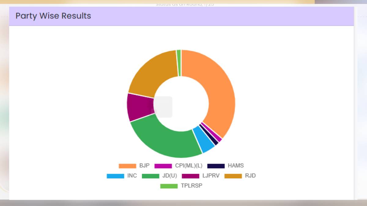 #biharelection2025 | Election Commission declares election trends on all 243 seats in the state.NDA leading on 185 (BJP 84, JDU 75, LJP(RV) 22), HAMS 4)Mahagathbandhan on 49 (RJD 36, Congress 7, CPI(ML)L 6) pic.twitter.com/pvNPYDXvln