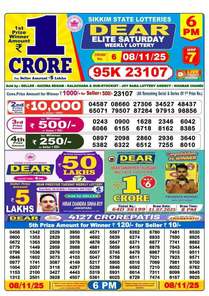 Nagaland Lottery Sambad Today: The results of the Nagaland State Lottery will be revealed in three drawings on Tuesday, November 8, 2025. The results for Dear Evening will be announced at 8 PM, Dear Day at 6 PM, and Dear Morning at 1 PM. A whopping ₹1 crore is awarded as the top prize in each of the three lotteries. Stay tuned and follow News 24 for real-time results updates below. Refresh the page and scroll down to view the full list of winners.