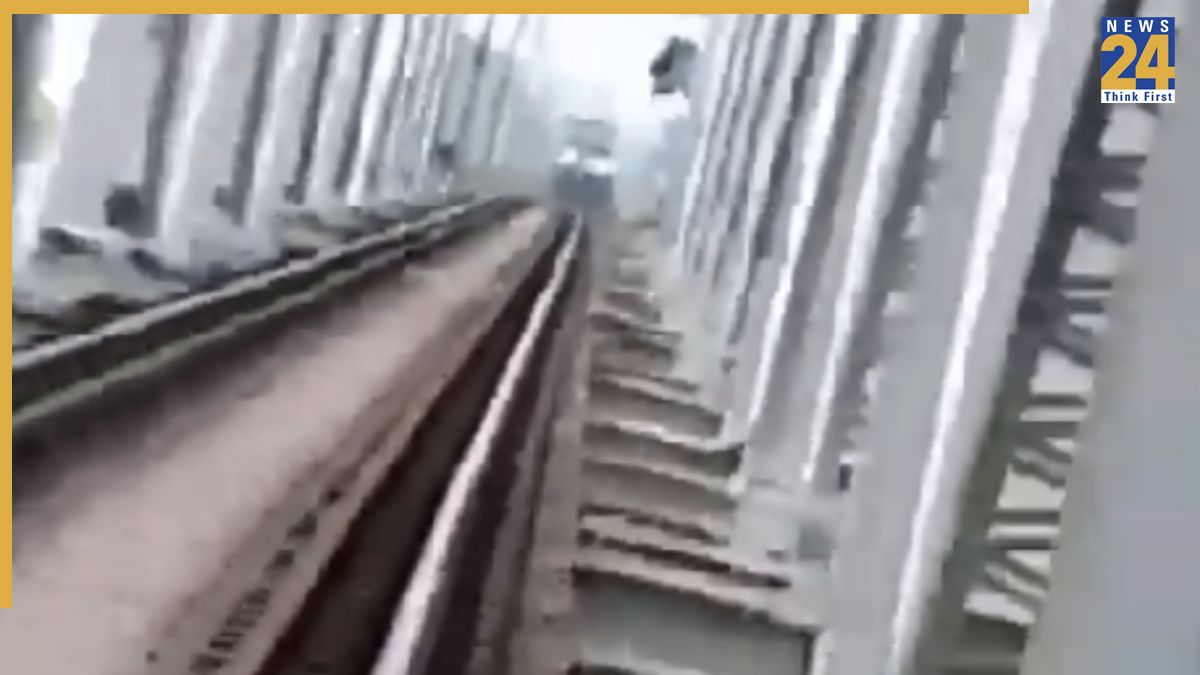 The mobile footage shows Sahu posing in front of an approaching train from the opposite direction, and his mobile phone fell onto the track.