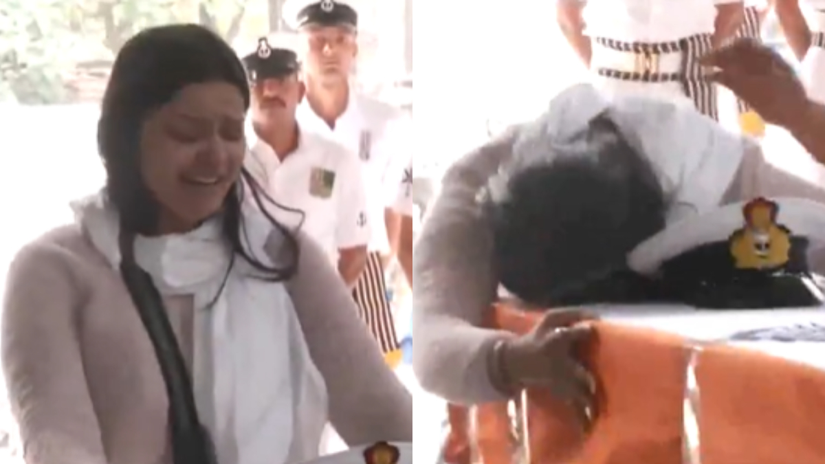 Indian Navy Lieutenant Vinay Narwal’s wife bid an emotional farewell to her husband, who was killed in the Pahalgam terror attack on April 21. The couple got married on April 16.