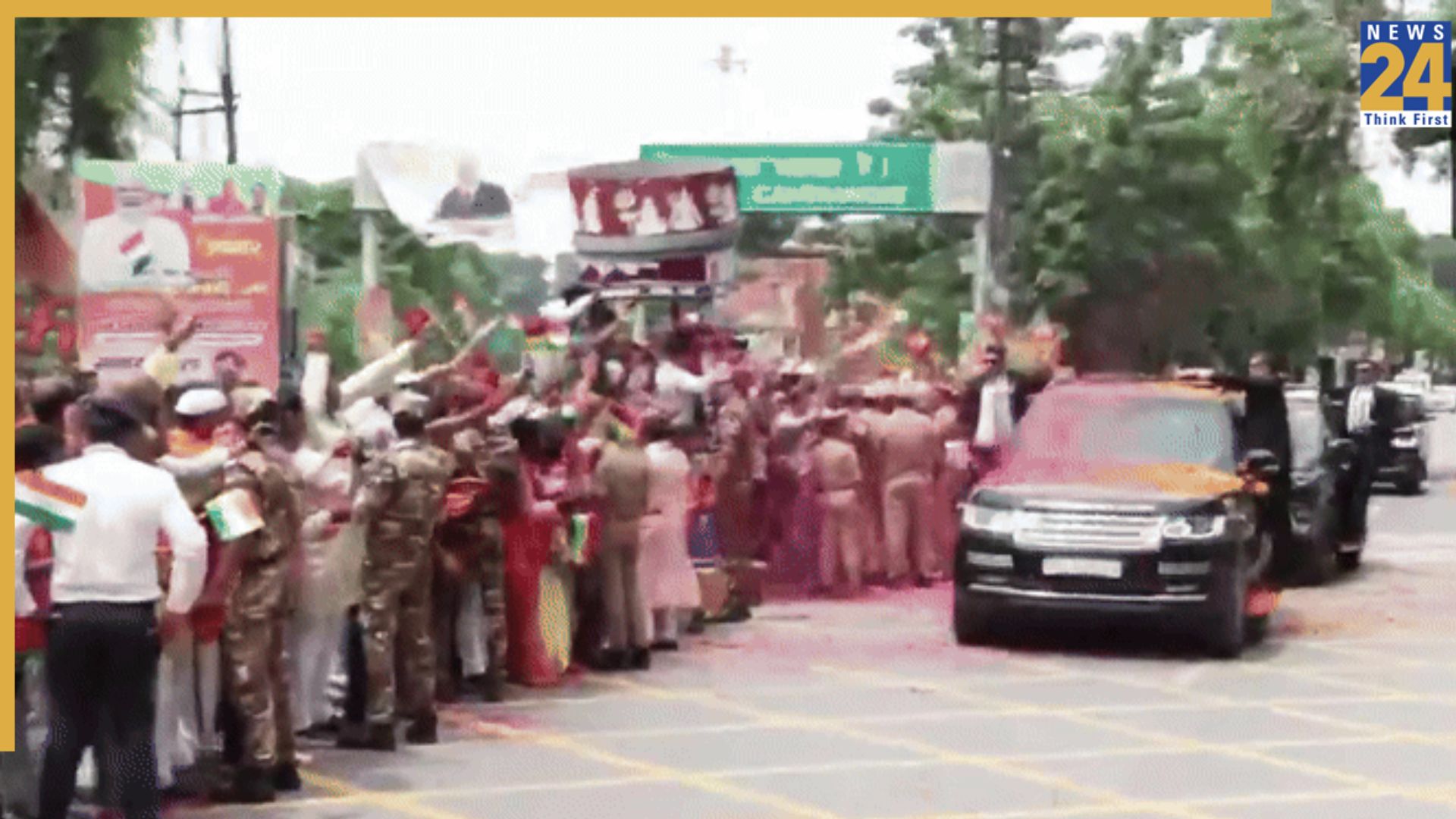 #WATCH | Prime Minister Narendra Modi receives a warm welcome on his arrival in Varanasi, Uttar Pradesh