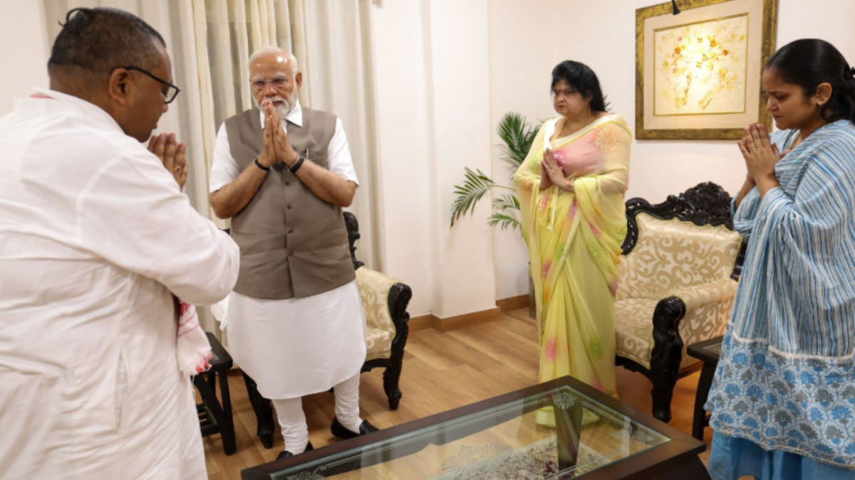 The PM met the family of Shubham Dwivedi at Chakeri airport after landing in Kanpur. The young man recently tied the knot on February 12, lost his life in a brutal terrorist attack in Pahalgam while on a family trip with his wife and relatives.