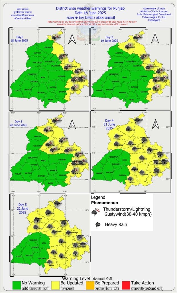 Light to moderate rain and strong winds are expected in many areas of Punjab. According to the Meteorological Department, there is a possibility of thunderstorms and moderate rain in some parts of Sangrur, Barnala, Dhuri, Malerkotla, and Patiala.