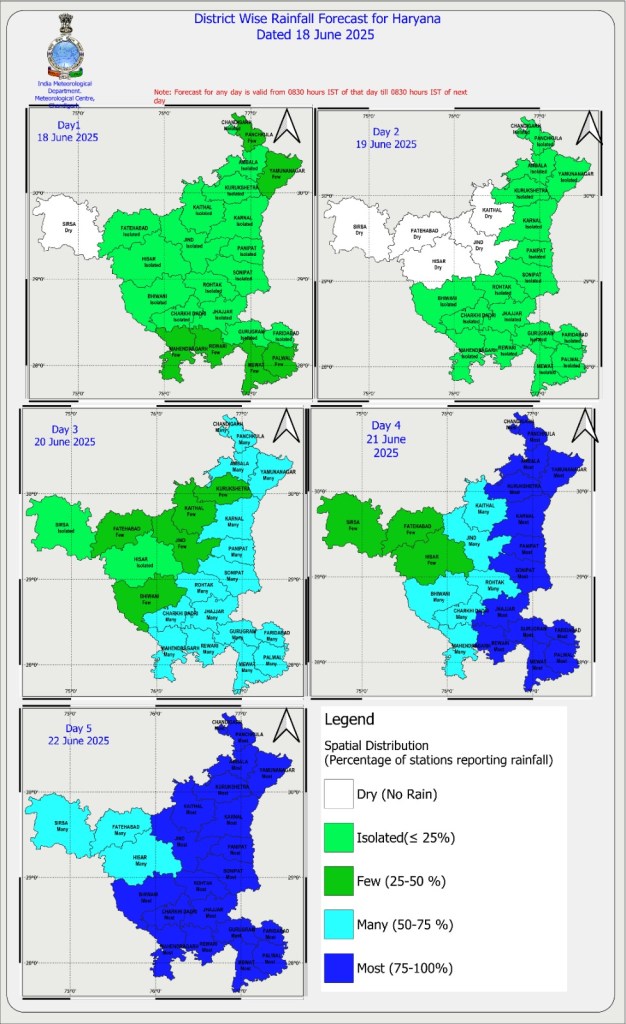 Pre-monsoon winds are expected to start blowing from June 19, which may lead to an increase in humidity and a further drop in temperature. It is estimated that the monsoon will enter Haryana on June 28.