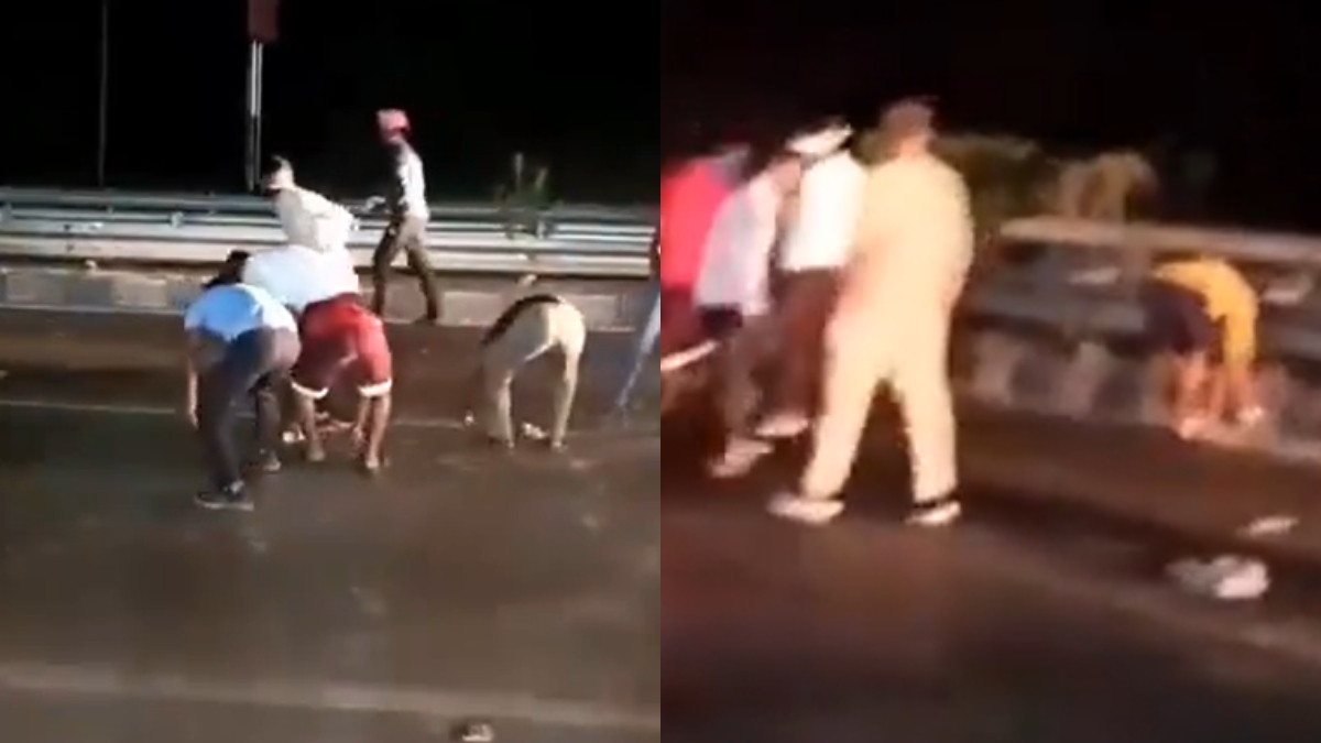 Footage of the incident being shared on social media caught many people racing to pick up the cash fallen on the road. People of all ages were running around in all directions, some even trying to avoid vehicles that were moving around them.