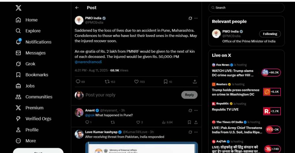Prime Minister Narendra Modi has expressed grief over this incident. PM Modi wrote, “Saddened by the loss of lives due to an accident in Pune, Maharashtra. Condolences to those who have lost their loved ones in the mishap. May the injured recover soon. An ex-gratia of Rs. 2 lakh from PMNRF would be given to the next of kin of each deceased. The injured would be given Rs. 50,000.”