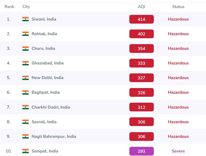 Delhi’s air quality index (AQI) of more than 300 still indicates dangerously contaminated air, placing it in the hazardous category. However, a number of lesser-known places outperformed it, demonstrating how the pollution problem has extended outside of the nation’s capital. This change is partly a result of local weather patterns, geographic considerations, and agricultural burning that traps pollution in smaller cities in the early winter.