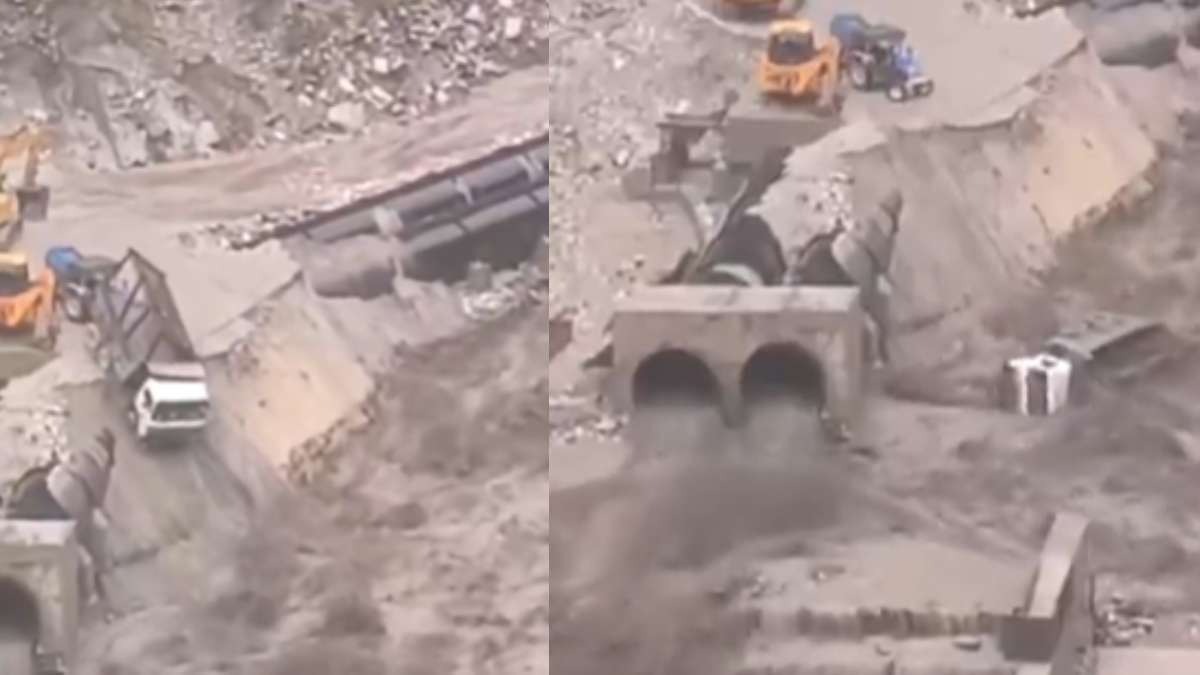 The incident sparked major concern for the downstream areas of the dam and triggered panic among residents living in those regions. The collapse of the dam led to a surge of water rushing downstream. The strong current from the abrupt waterfall swept away a Hydra crane, a dumper truck, and a rock breaker. Viral footage captured the sudden surge of water downstream, carrying with it a significant amount of debris from the site.