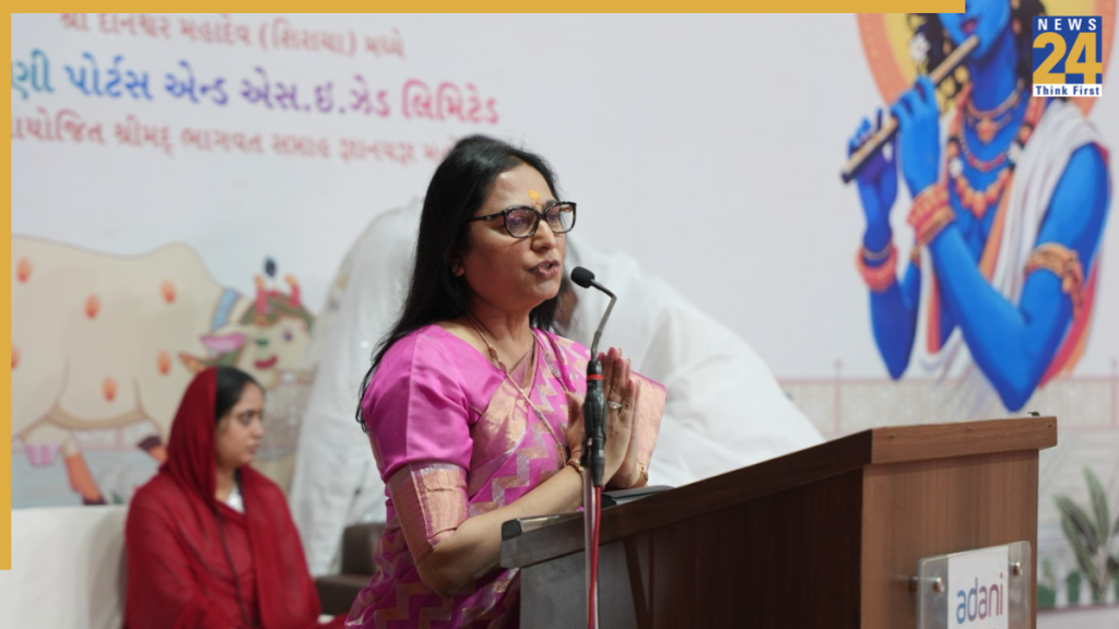 Adani Foundation Chairperson Dr Pritiben Adani began her address with the joyful words: âKi Aayo Mane, Maja Me.. Manike Muja Ram Ram.â She expressed immense happiness seeing the large gathering come to partake in the Bhagwat ras-pan (spiritual discourse).Â