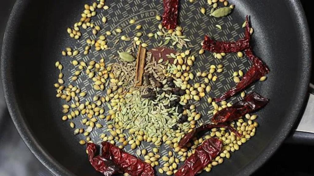 4. Splutter fennel seeds, cloves, cardamom, and cinnamon in a hot pan.
