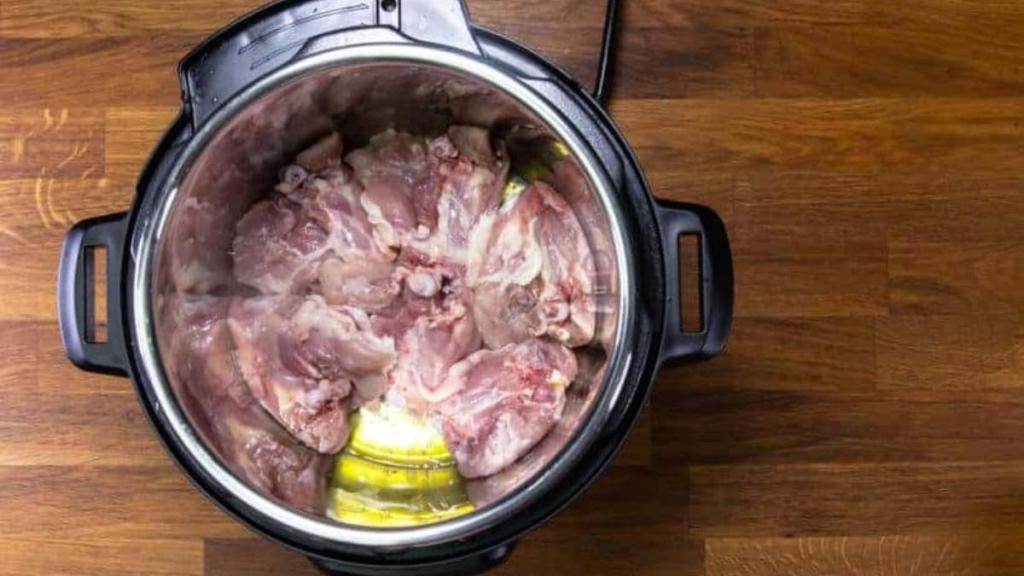 1. Clean-cut chicken pieces and place them in a pressure cooker.