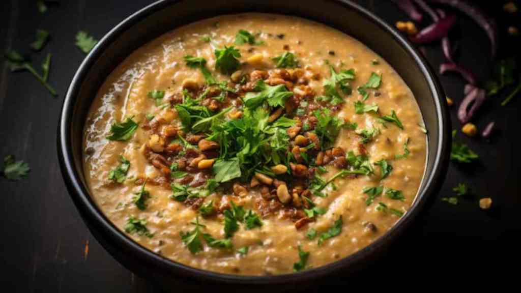 It is a rich, slow cooked meat dish made with mutton, wheat, lentils and aromatic spices, which creates a thick, creamy and spicy dish.