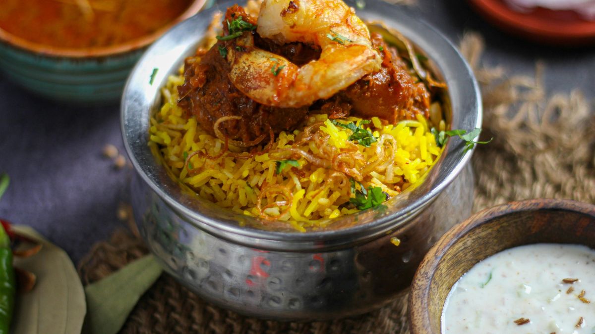 Prawn biryani is an indian dish where the fragrant basmati rice is infused with prawns, spices and herbs. This dish is the perfect combination of flavours that makes it favourite among seafood and biryani enthusiasts