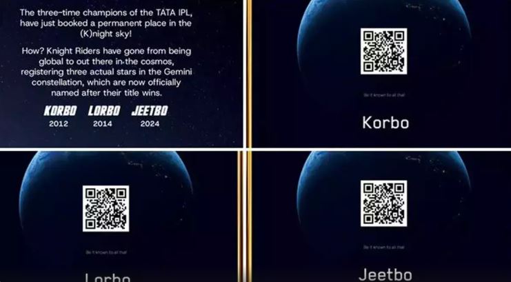 The Knight Riders named three actual stars after their title wins in 2012 (Korbo), 2014 (Lorbo), and 2024 (Jeetbo), officially registering them around the Gemini constellation.