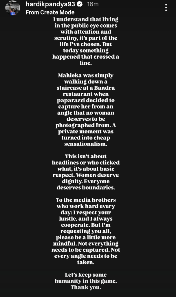 In the statement Hardik wrote “I understand that living in the public eye comes with attention and scrutiny, it’s part of the life I’ve chosen. But today something