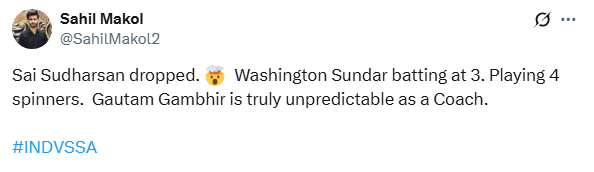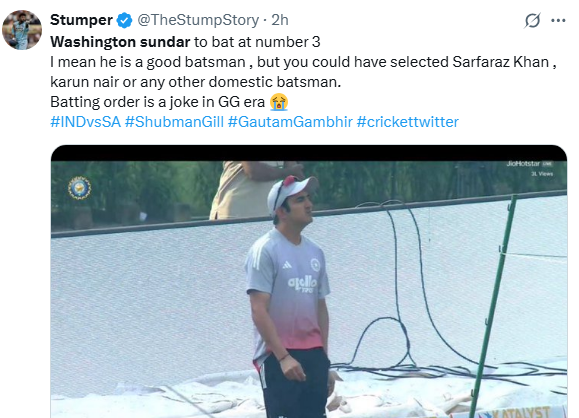 The decision didn’t go well with many fans and they questioned Gambhir’s decision to drop Sai Sudharsan and play bowling all-rounder Washington Sundar in his place who is not even a specialist batter.