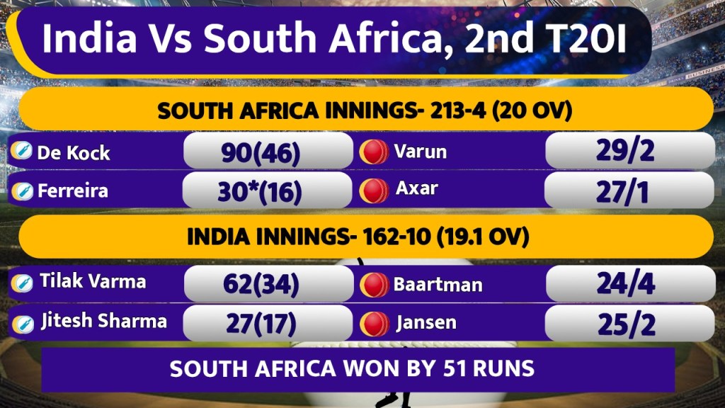 In the second innings, India were off to a disastrous start and India’s captain Suryakumar Yadav and vice-captain Shubman Gill again failed to perform. Shubman Gill was dismissed for a duck by Lungi Nigidi and Suryakumar Yadav was dismissed for 5 runs by Marco Jansen. Axar Patel tried to hold the fort but was eventually was out at the score of 21.
