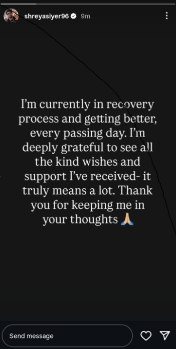 India’s star cricketer and ODI batter Shreyas Iyer had given a heartfelt message to all the fans and updated that he is currently under the recovery process. He posted it on his Instagram and wrote: