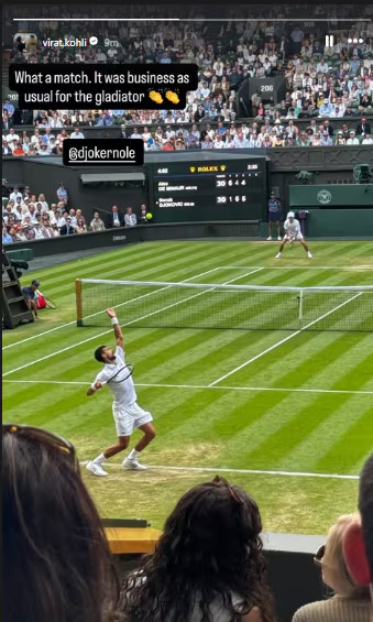 India’s star cricketer Virat Kohli was spotted at Wimbledon 2025 with his wife Anushka Sharma after his recent retirement from Test cricket. He was last seen in action during IPL 2025, when his team Royal Challengers Bengaluru (RCB) won their maiden IPL Title. Kohli and Anushka were seen watching Men’s Round of 16 clash between Novak Djokovic and Australia’s Alex de Minaur. The match was held on centre court and Djokovic bounced back after a rocky start losing the opening set 1-6 but then he made a strong comeback and won four sets 1-6, 6-4, 6-4, 6-4.