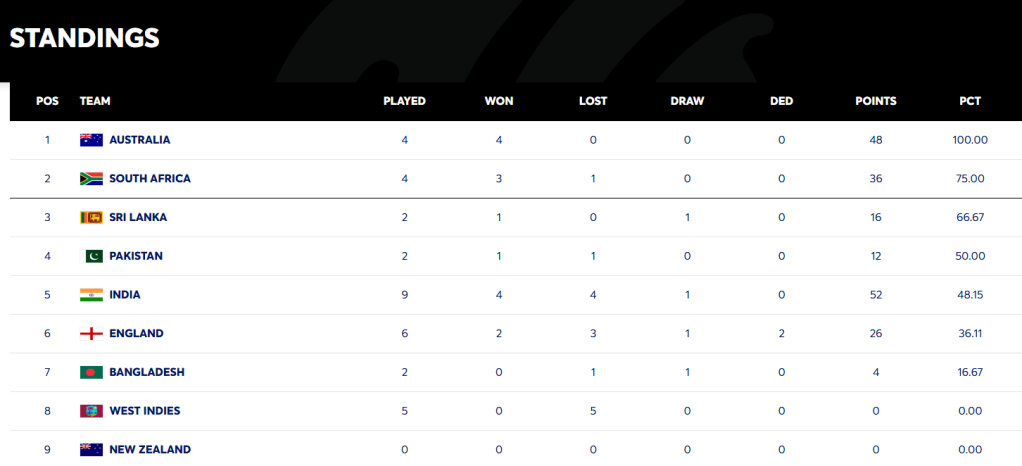 India has now slipped to fifth position with 52 points in the World Test Championship (WTC) points table which is even below Pakistan.