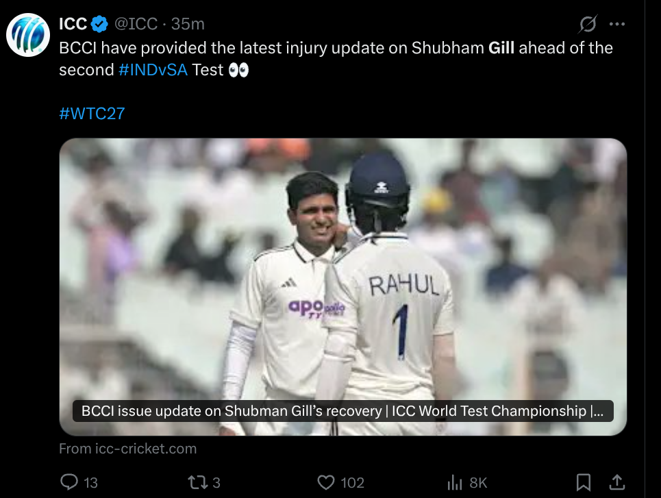 Gill hurt his neck after just three balls in the first Test, which forced him off the field. He couldn’t bat again in that innings or in the second one either, so India missed him, and it definitely hurt their chances.