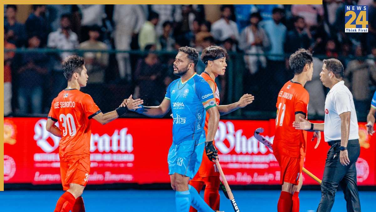 The Indian Men’s Hockey Team and Korea played out a 2-2 draw in their opening Super 4s game at the Hero Men’s Asia Cup Rajgir Bihar 2025. Hardik Singh (8′) and Mandeep Singh (53′) were the goalscorers for India while Jihun Yang (12′) and Hyeonhong Kim (14′) scored for Korea.