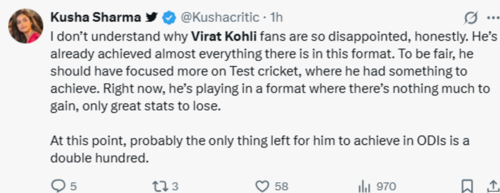Yet, on social media, opinions are divided. While some hold on to hope for a revival, others fear this might be the beginning of Kohli’s twilight in one-day internationals. One comment that caught attention came from a user named Neal Gardner, who referenced a famous football quote by former England defender Jamie Carragher: “Leave cricket before cricket leaves you.” Carragher originally used this phrase to describe a player’s decline, and Gardner hinted it might apply to Kohli’s recent slump as well.