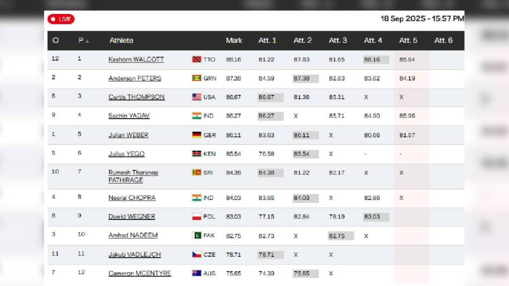 While Neeraj struggled, Sachin Yadav narrowly missed the podium, finishing fourth with a personal best throw of 86.27 meters, achieved in the opening round. Arshad Nadeem finished 10th with a throw of 82.75 meters.
