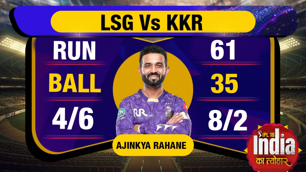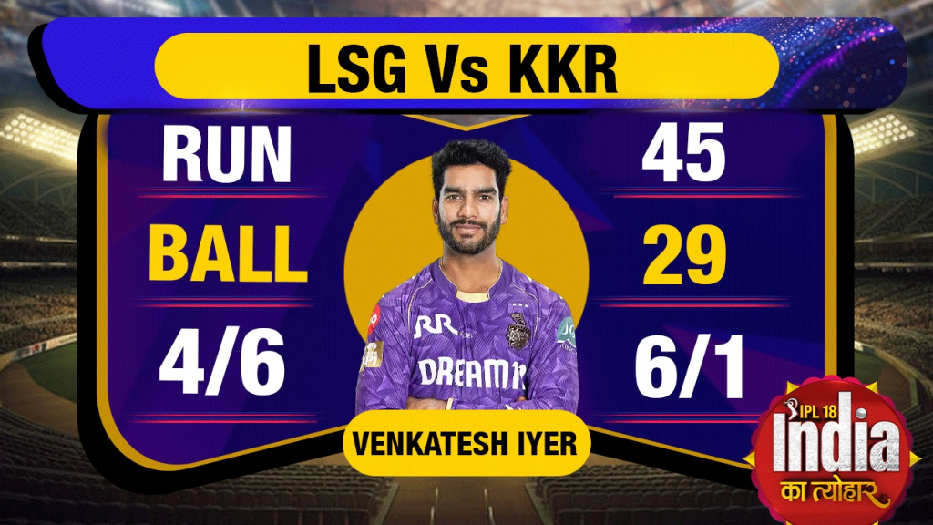 In seventh position of the points standings LSG maintains a 3-2 win-loss record against KKR who occupy the fifth place. KKR made one substitution ahead of the match by inserting Spencer Johnson to replace Moeen Ali in their starting eleven. LSG made no change.