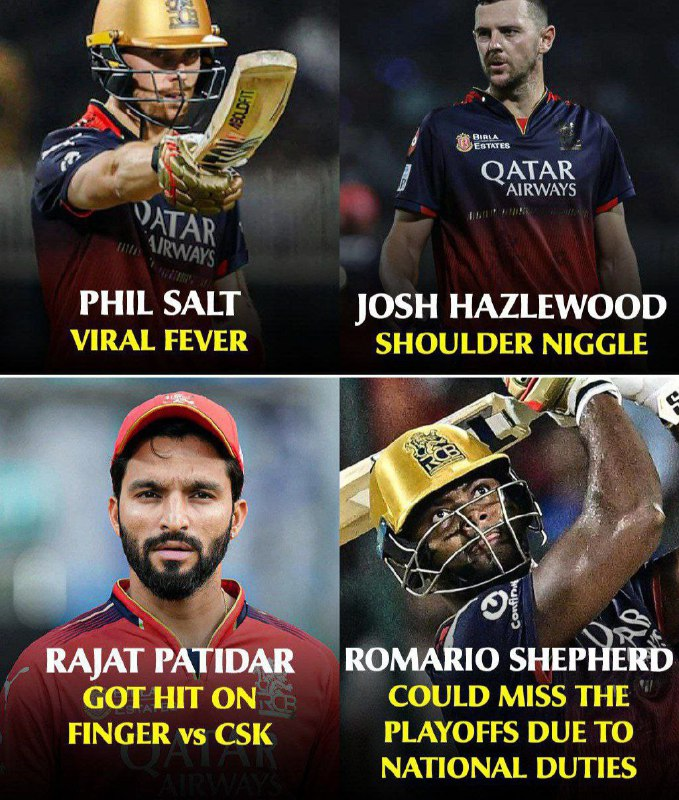 The Royal Challengers Bengaluru are having a wonderful season in the 2025 IPL edition. They have almost reserved themselves a spot in the playoffs. With 8 wins and 3 losses in 11 games, the Patidar-led squad finds them don’t the second spot at the points table. But looks like some key players might not be seen in the playoffs due to health reasons and calls of national duty. Players like Josh Hazlewood, Phil Salt, Romario Shephard, and even captain Rajat Patidar’s appearance might be uncertain in the playoffs.