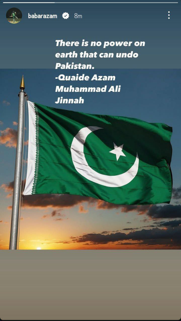 “There is no power on earth that can undo Pakistan.” Babar posted Muhammad Ali Jinnah’s words on social media.