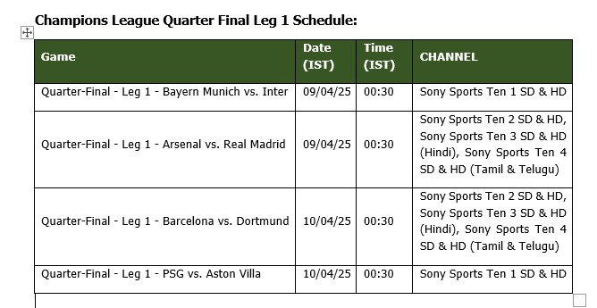 The UEFA Champions League 2024-25 is reaching its thrilling climax, with the Quarterfinals kicking off from Wednesday, April 9, 2025, at 12:30 AM IST. After a tournament packed with surprises, drama, and standout performances, the stage is set for another mid-week spectacle. Indian fans can catch all the action LIVE on Sony Sports Network and Sony LIV.